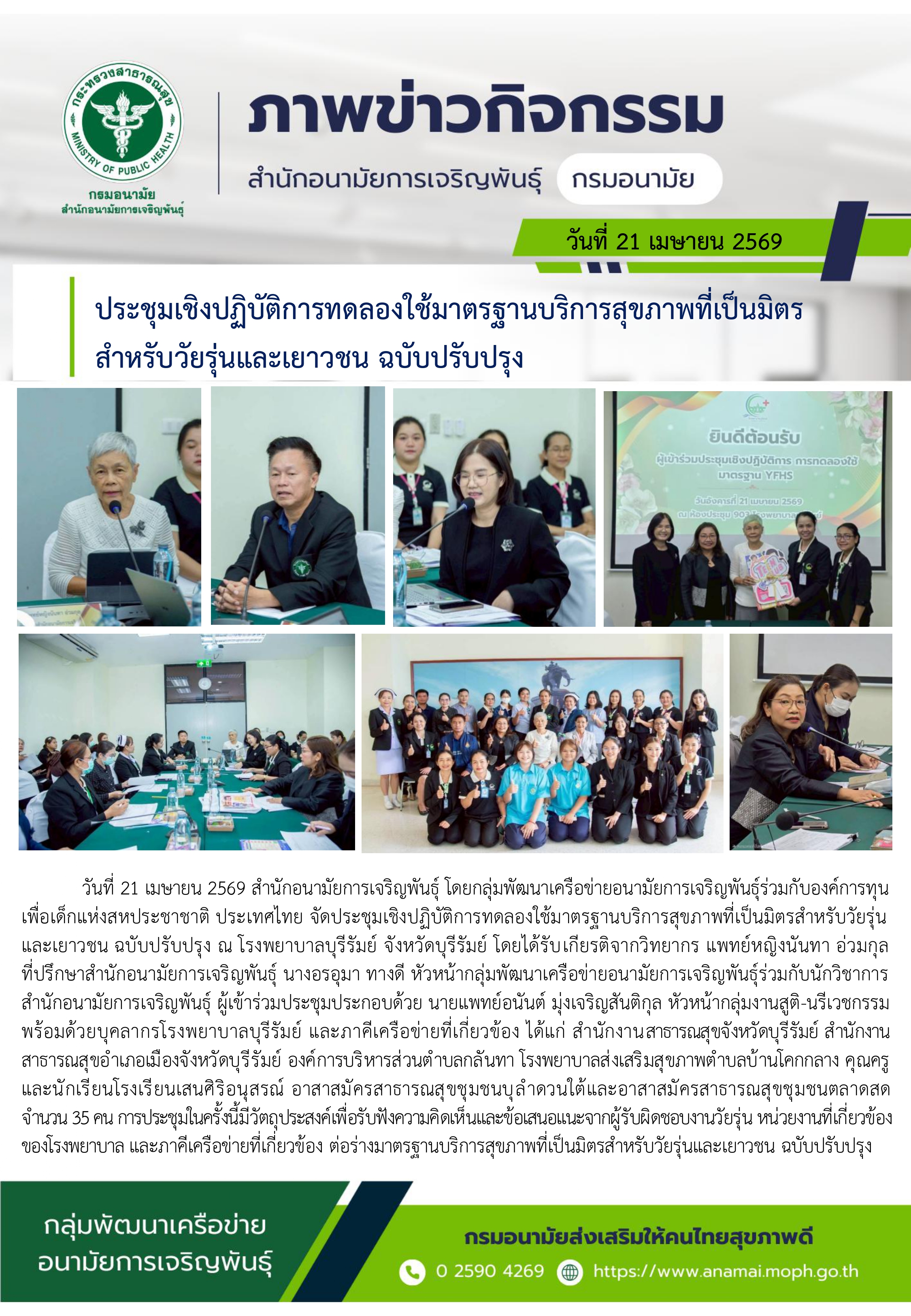 ระชุมเชิงปฏิบัติการทดลองใช้มาตรฐานบริการสุขภาพที่เป็นมิตรสำหรับวัยรุ่นและเยาวชน ฉบับปรับปรุง ณ โรงพยาบาลบุรีรัมย์ จังหวัดบุรีรัมย์